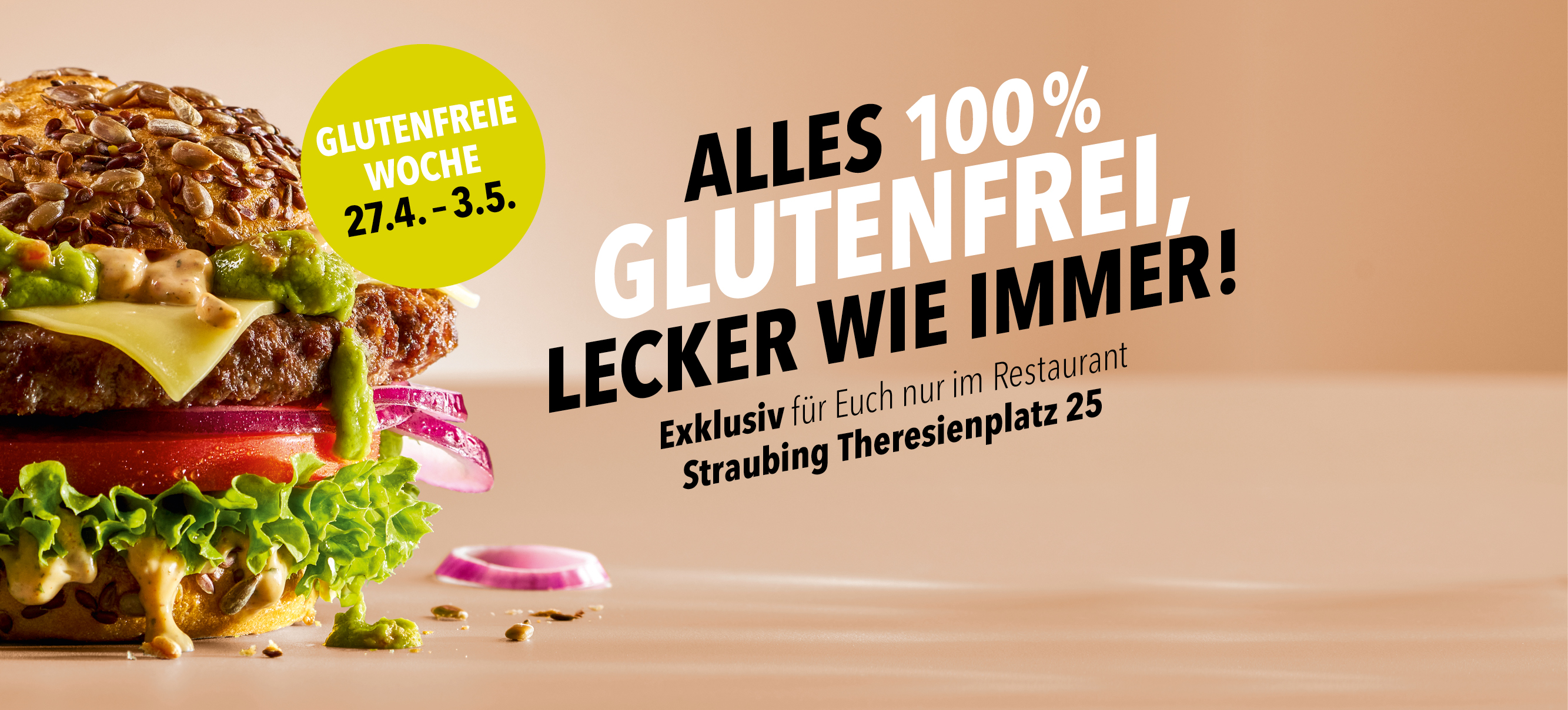 Nicht weit von der schönen Donau entfernt, im Zentrum der Stadt, befindet sich unser schönes Restaurant in Straubing am Theresienplatz. Genieße hier köstliche Burger, frische Salate und leckere Kleinigkeiten. Egal ob vegetarisch, vegan oder mit Fleisch – hier ist für jeden etwas dabei. All unsere Gerichte sind immer frisch und mit viel Liebe für Dich zubereitet. Und wenn es nur etwas Prickelndes sein soll: An unserer einladenden Bar erwartet Dich eine große Auswahl leckerer Cocktails. Erlebe jetzt einen einzigartigen Restaurantbesuch in Straubing – denn Glück braucht nicht viel. Glück braucht nur das Richtige.